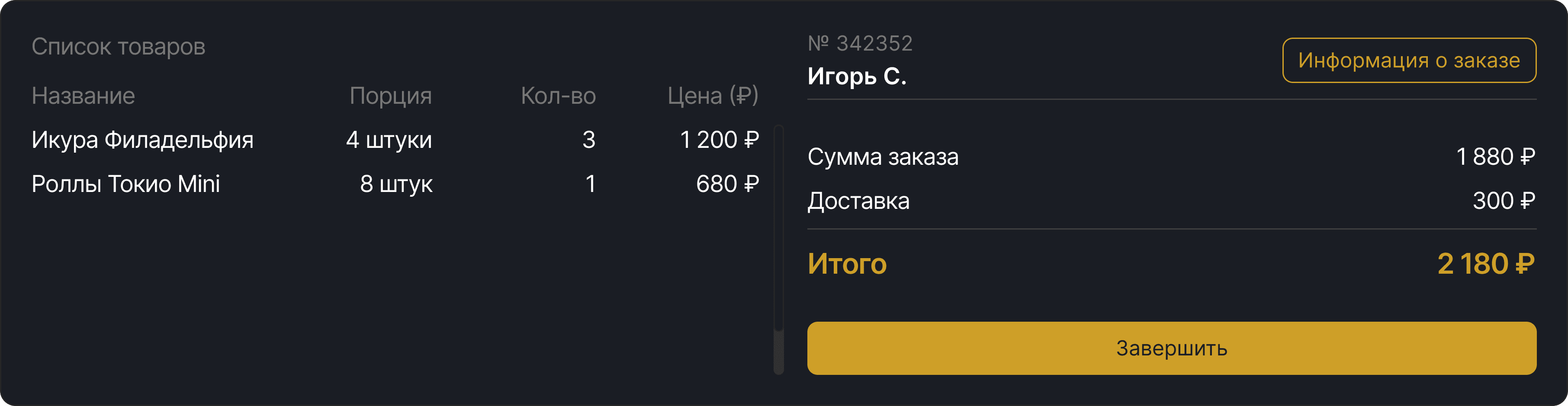 Цели. Повысить эффективность работы персонала, сделать интерфейс понятным и удобным, визуально адаптировать систему под стиль ресторана, реализовать светлую и тёмную темы для разных условий работы, улучшить читаемость и расставить приоритеты в данных, а также упростить адаптацию новых сотрудников