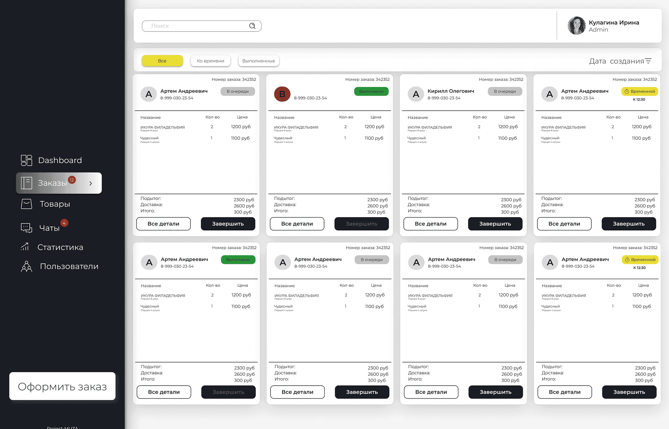 Мы переработали структуру с акцентом на приоритетные действия, убрали визуальный шум и усилили контраст ключевых данных, а также удалили неиспользуемые элементы, такие как фото клиентов и пустые поля.