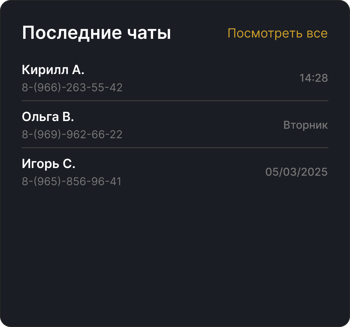 и контакты всегда под рукой, без лишних переходов между экранами. Это упростило коммуникацию и ускорило решение задач.