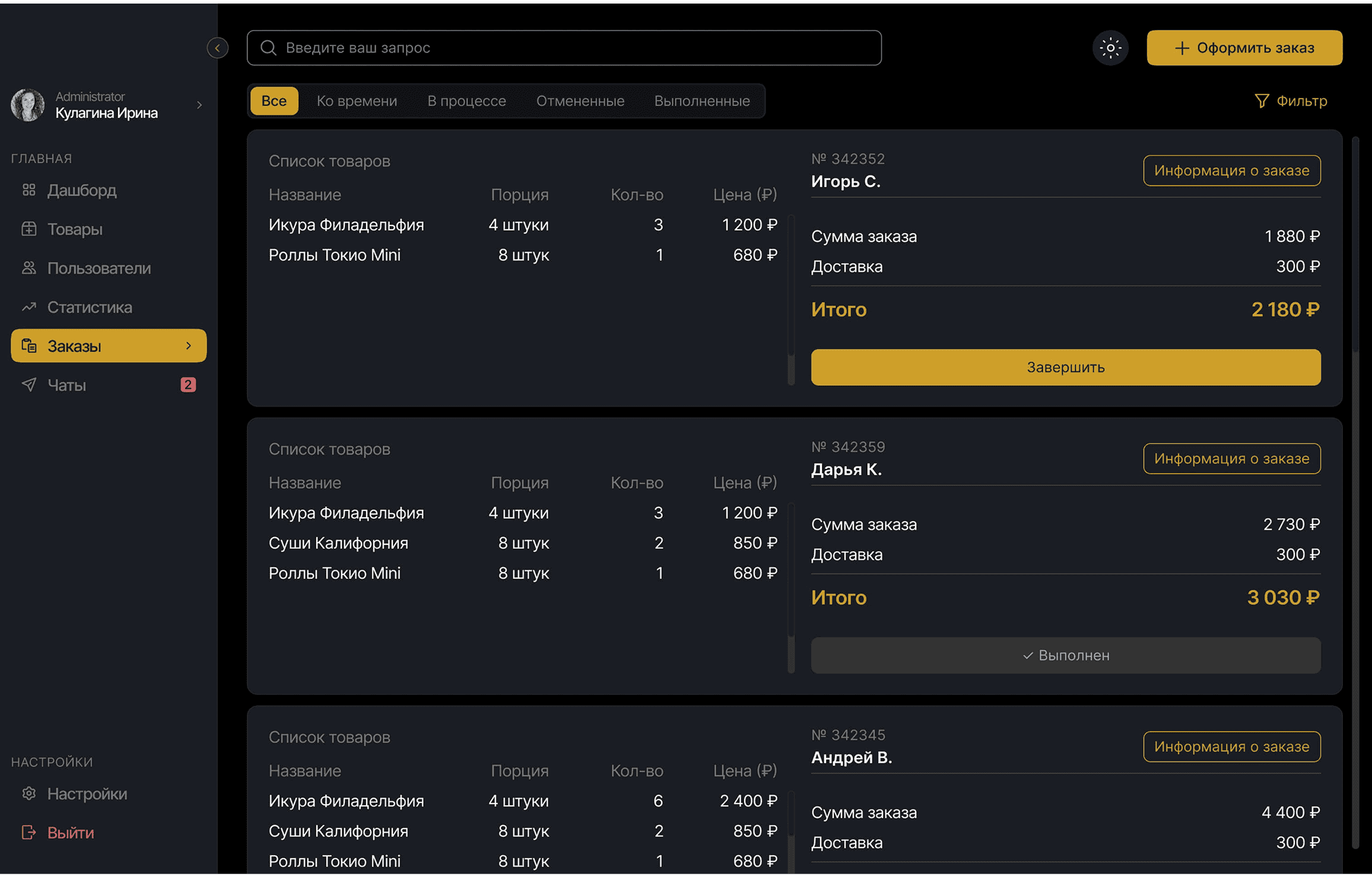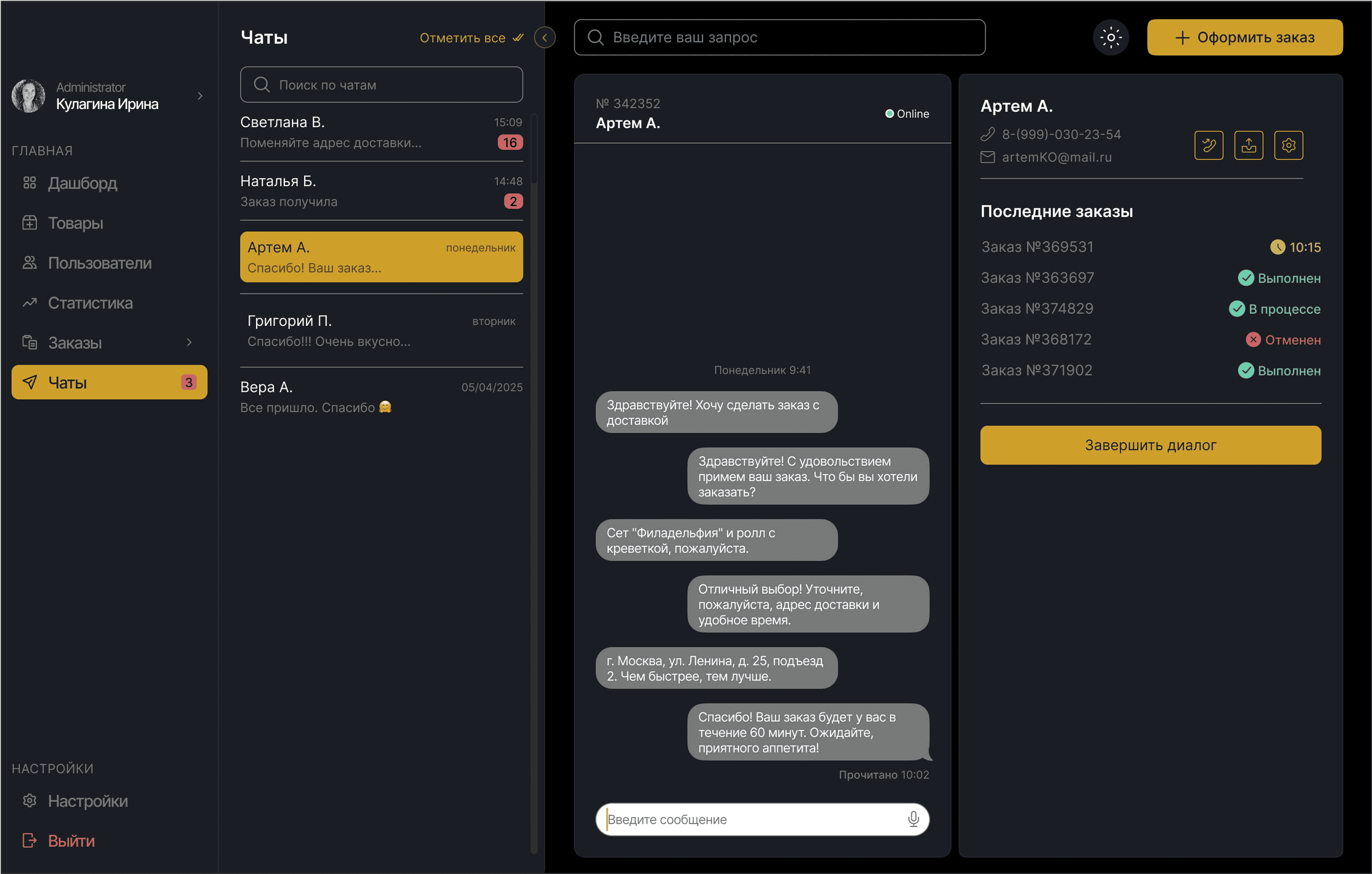 Общение и заказы в одном окне