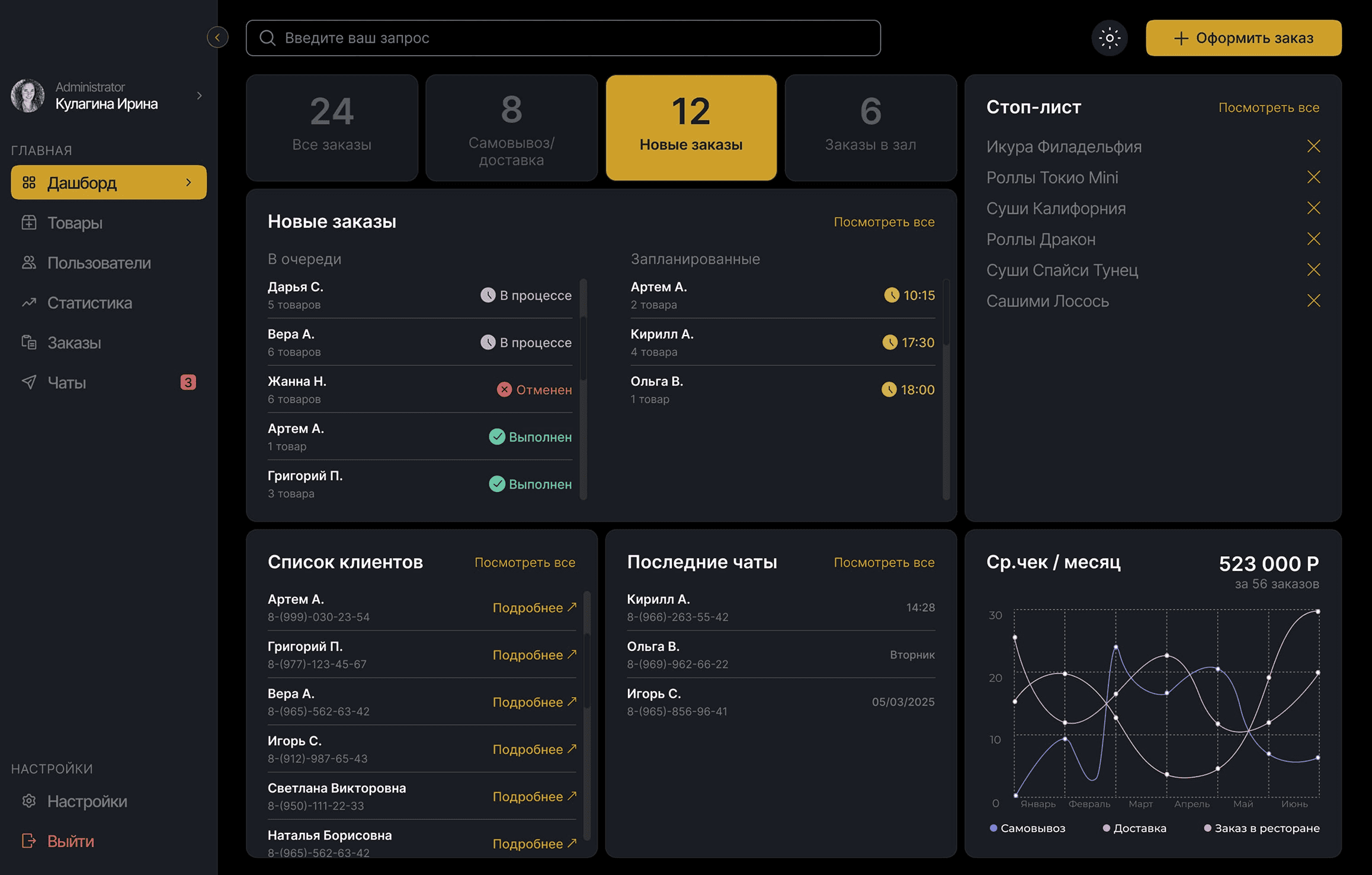 К нам обратился ресторан с просьбой переосмыслить их текущую CRM-систему. Старая версия была перегружена, лишена визуальной иерархии,